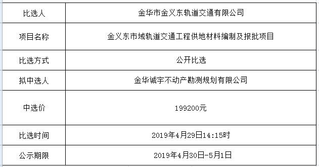 金華市金義東軌道交通有限公司運(yùn)營(yíng)環(huán)境長(zhǎng)效管理系統(tǒng)項(xiàng)目中標(biāo)候選人公示