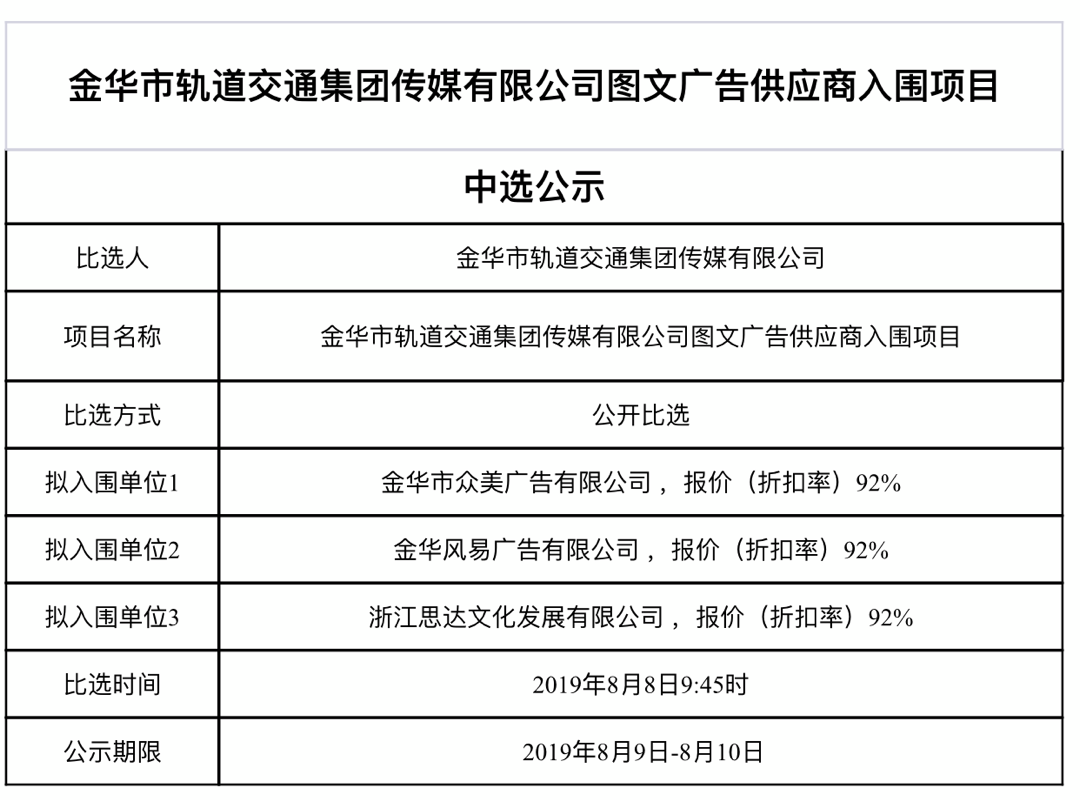 中選公示(傳媒廣告)