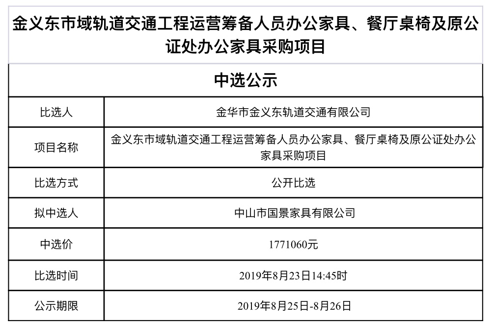 金華市金義東軌道交通有限公司運營2026-2028年度場段司機公寓床上用品采購項目中標(biāo)候選人公示