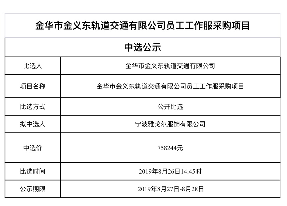 金華市金義東軌道交通有限公司運營2026-2028年度場段司機公寓床上用品采購項目中標候選人公示