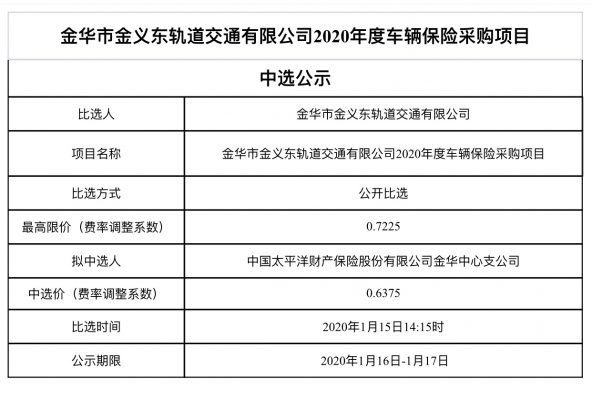 金華市金義東軌道交通有限公司運(yùn)營環(huán)境長效管理系統(tǒng)項目中標(biāo)候選人公示