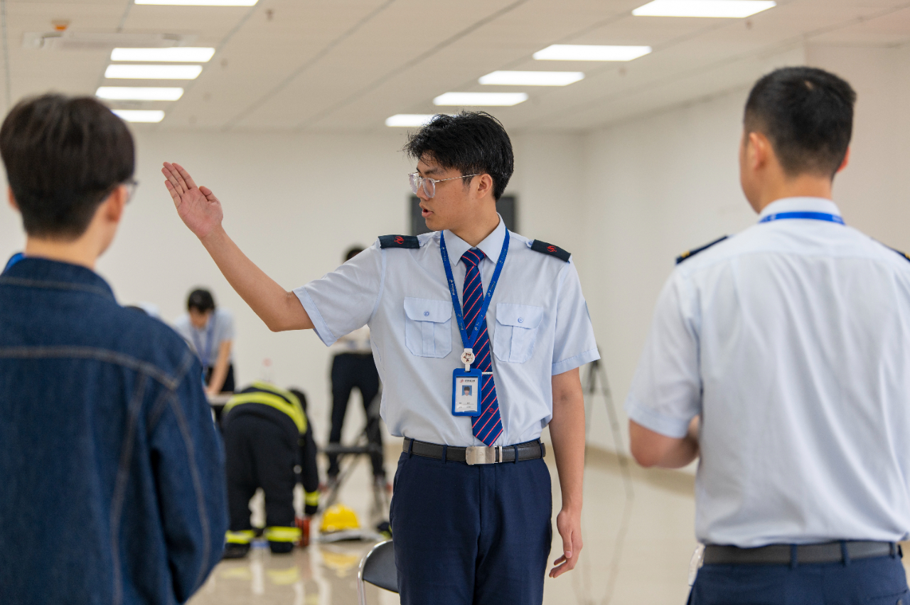 6月11日,在浙江省金華市金義東市域軌道交通工程塘雅車(chē)輛段,青年職工選手在參加軌道交通服務(wù)禮儀項(xiàng)目技能比武。