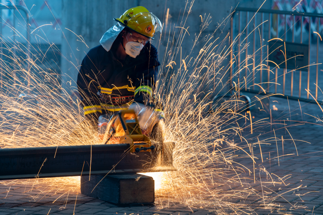 6月11日,在浙江省金華市金義東市域軌道交通工程塘雅車(chē)輛段,青年職工選手在參加軌道交通鋼軌切割項(xiàng)目技能比武。