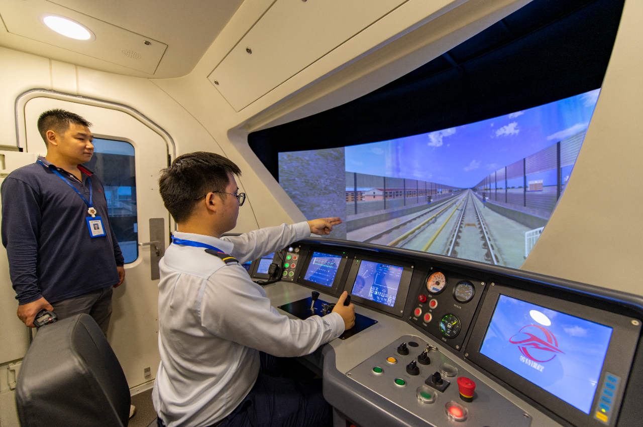 6月11日,在浙江省金華市金義東市域軌道交通工程塘雅車(chē)輛段,青年職工選手在參加軌道交通模擬駕駛項(xiàng)目技能比武。