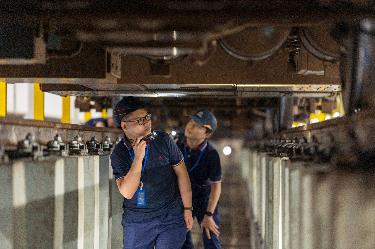 6月11日,在浙江省金華市金義東市域軌道交通工程塘雅車(chē)輛段,青年職工選手在參加軌道交通車(chē)廂安檢項(xiàng)目技能比武。當(dāng)日,浙江省金華市舉行第三屆軌道交通青年職工技能比武大賽。從全市1000多名專(zhuān)業(yè)人員中選撥出來(lái)的282名青年職工選手參加應(yīng)急處置、服務(wù)禮儀、手動(dòng)駕駛、行車(chē)故障處置等13個(gè)項(xiàng)目的角逐,全面提升城市軌道交通從業(yè)人員的業(yè)務(wù)技能水平,推動(dòng)技能人才隊(duì)伍高質(zhì)量發(fā)展。
