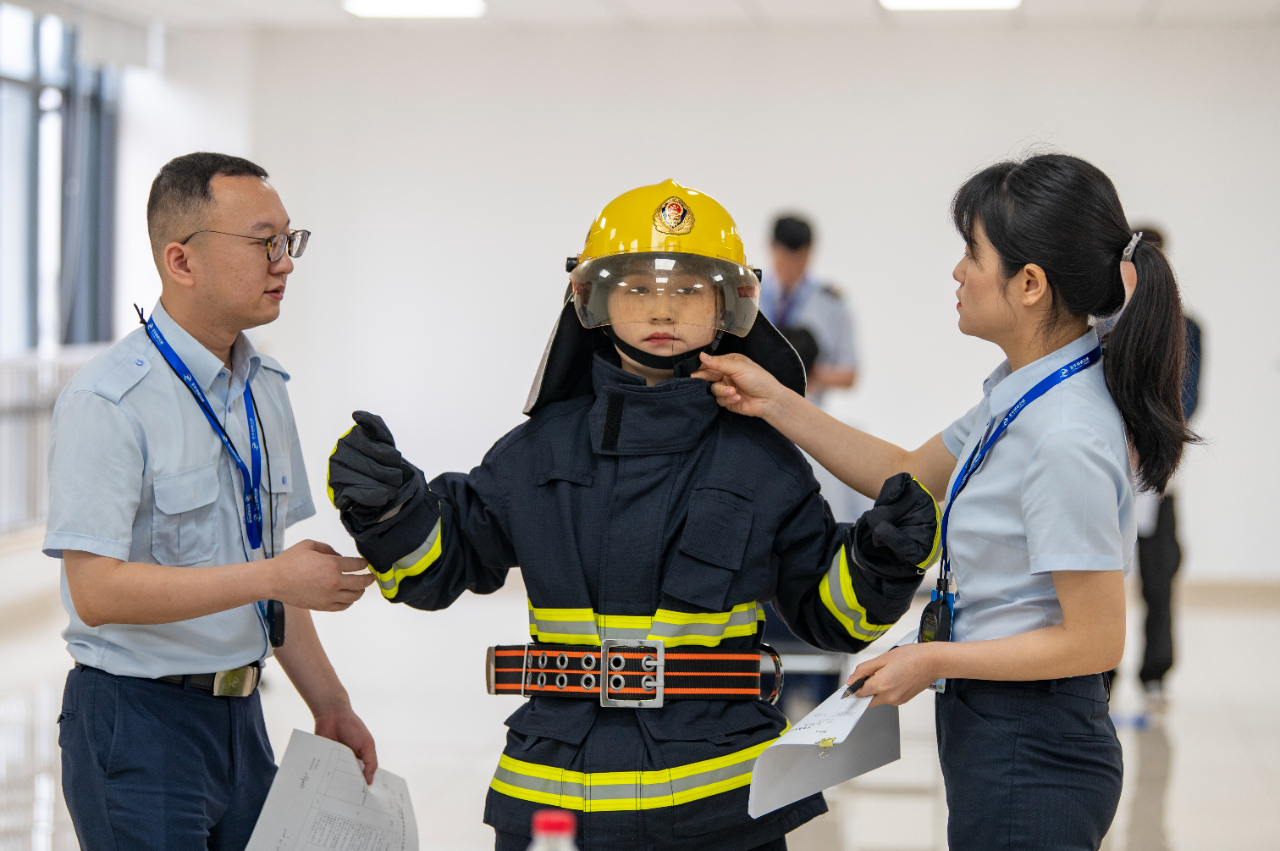 6月11日,在浙江省金華市金義東市域軌道交通工程塘雅車(chē)輛段,青年職工選手在參加軌道交通應(yīng)急處置項(xiàng)目技能比武。