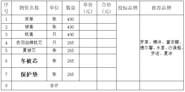 致:各參選人 比選人現(xiàn)將參選人提出的問(wèn)題及招標(biāo)文件需要澄清、修改、補(bǔ)遺、答疑的內(nèi)容,統(tǒng)一答復(fù)你們,請(qǐng)認(rèn)真研究。本次澄清、修改、補(bǔ)遺、答疑若與招標(biāo)文件不一致之處,以本次補(bǔ)充文件為準(zhǔn)。一、問(wèn):報(bào)價(jià)明細(xì)表中有推薦品牌,其他品牌是否可以參與? 推薦品牌均為家紡產(chǎn)品的品牌,而貴公司所需產(chǎn)品均為酒店布草產(chǎn)品,與家紡產(chǎn)品存在差異,且一般酒店布草的同質(zhì)量產(chǎn)品在技術(shù)標(biāo)準(zhǔn)上均優(yōu)于甲方產(chǎn)品。建議貴公司可以放開參與品牌的范圍,允許類似我司這樣的專業(yè)酒店布草生產(chǎn)廠家參加。答:甲方推薦品牌的,供貨產(chǎn)品品牌須在技術(shù)需求中推薦品牌范圍內(nèi)或相當(dāng)于(或優(yōu)于)推薦品牌。